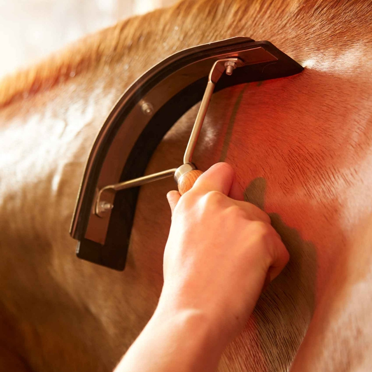 The wood handle is warm in the hand and offers a traditional and smart appearance. Can be used to squeegee excess water or sweat from the horse’s coat, helping to reduce drying time.