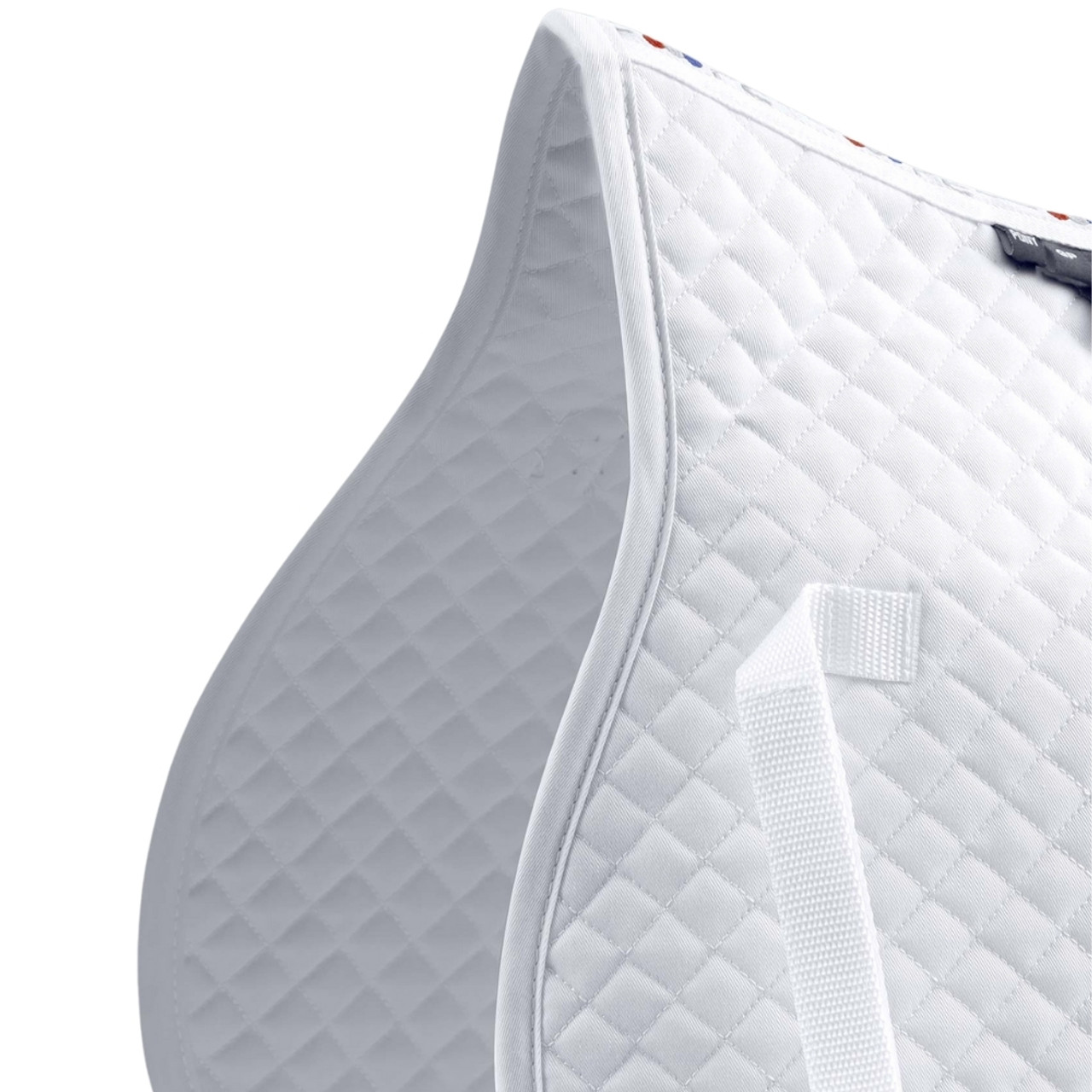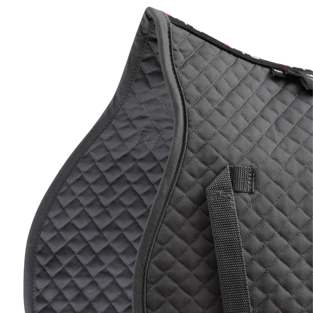 Crafted with comfort in mind, this saddle pad is engineered with specialised wicking fibers that efficiently draw moisture and sweat through the pad, ensuring your pony stays dry and comfortable during exercise. The pad is made entirely from superior quality cotton and incorporates a 600-denier polyester anti-rub girth panel, making it an excellent choice for both everyday use and competitions. Specifically designed for ponies, this saddle pad is the perfect combination of comfort, durability, and style. Available in a variety of colours.
