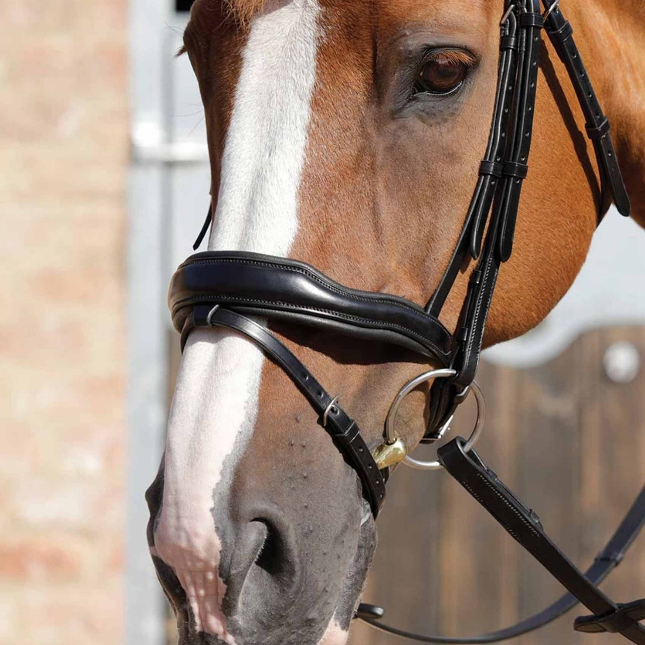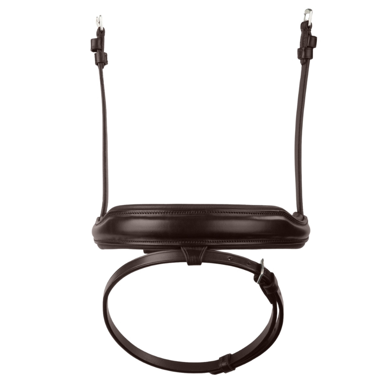 Crafted from high-quality Italian leather, this anatomic flash noseband is meticulously shaped to conform to the contours of the horse's nose and cheekbones, ensuring a comfortable and ergonomic fit. The unique anatomically shaped snaffle noseband features a design that dips down at the sides to prevent contact with the horse's cheekbones, reducing pressure and potentially enhancing performance. Premium quality stainless steel fastenings and elegant stitching complete the overall stunning look. Anatomic nosebands are especially well-suited for sensitive or young horses, offering enhanced comfort that can be beneficial for their well-being. Available in Black and Brown.