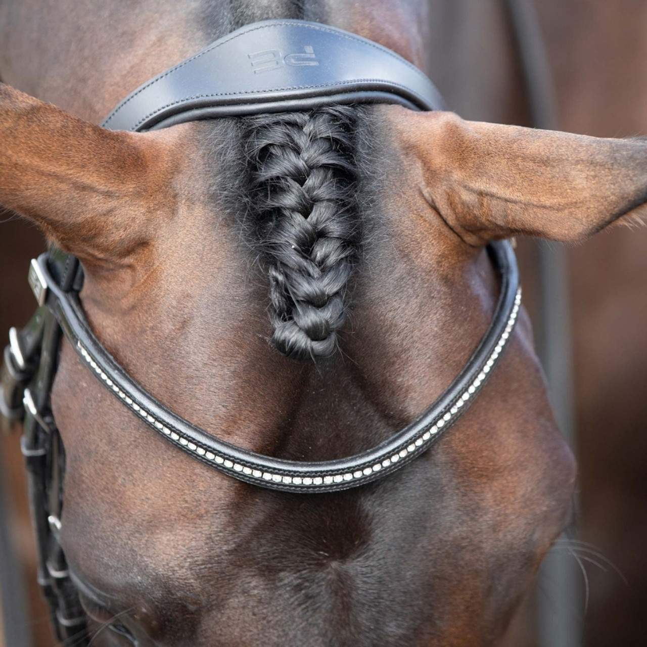 - Soft, padded and shaped Browband with a round raised design and 'PE' branded brooch either side