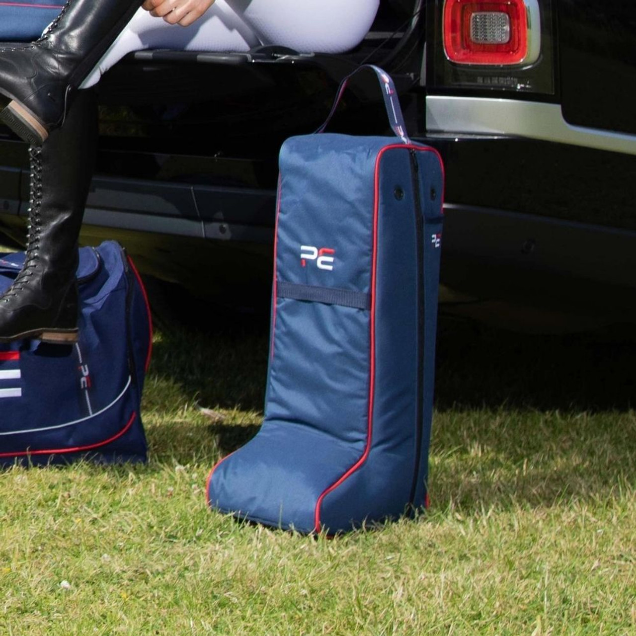 Perfect for protecting your boots from dust, dirt and scratches when not in use. Crafted from polyester cushioned lining for ultimate boot protection, this tall boot storage bag features everything you require in your boot storage needs. Four carefully positioned vents allow airflow throughout to help keep your boots fresh. Added studded feet help to protect the base of the storage bag from unnecessary wear. Featuring a zip either side of the bag provides two individual boot compartments, externally accented with a tidy whip pocket for convenience. With a single handle at the front centre of the storage bag and a branded handle at the top - this bag offers two options for carrying to ensure practicality and ease of mobility. Available in Navy.