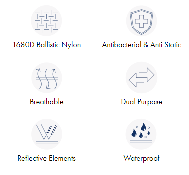 - Branded reflective safety strips on the front, side and rear of the rug.