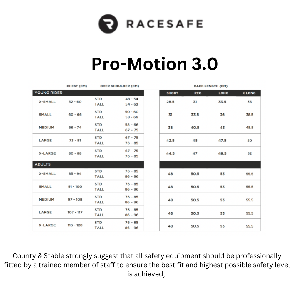 We recommend getting your body protector fitted in store.