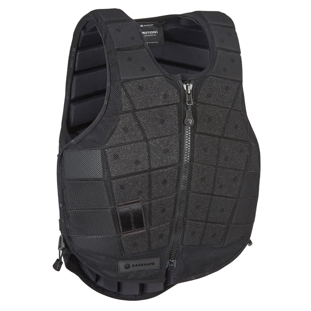 Combining the very latest BETA Level 3 protection with unparalleled freedom of movement the Racesafe Pro-Motion 3.0 body protector sets the new standard. With over 120 individually hinged segments the body protector moves with you, giving total freedom of movement, leaving you to focus on the riding. Expertly made in the UK the lightweight body protector features innovative MotionGuard multi-foam technology for outstanding comfort for the rider along with breathable materials helping you to keep cool as the riding action hots up. Now available in black, with superb practicality and no restrictions on movement, Motion3 protects, feels comfortable to wear and robustly designed to take on the rigours of the more adventurous rider. Fastened to the front with a large robust zip and featuring subtle Racesafe branding.