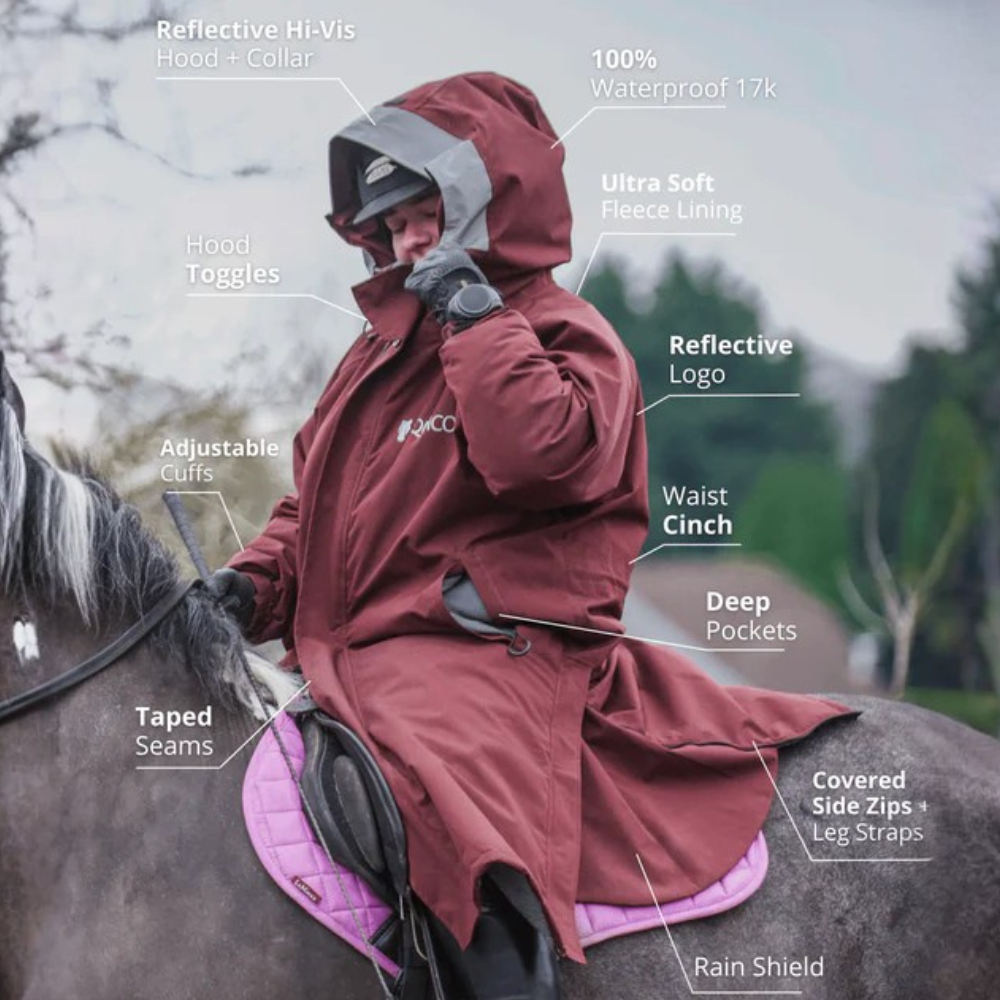 - Extra large hood that fits over riding hats