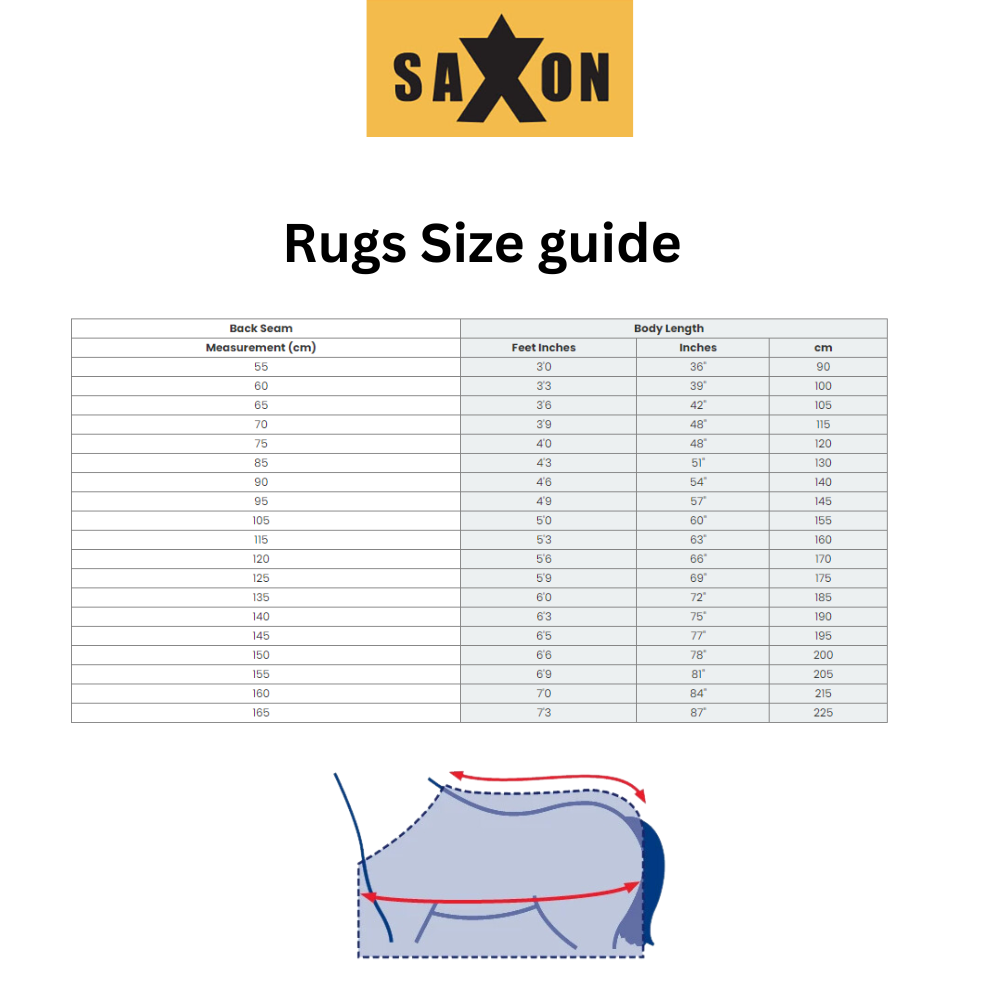 Perfect for the summer months and warmer days of the year, introducing the Saxon Defiant 600D Standard Neck Turnout Rug 0g. Cleverly made from tough 600 denier ripstop waterproof and breathable outer, the weave outer fabric limits the spread of tears. The twin surcingle chest closure makes it easy to put the turnout rug on your horse and secure with standard tail flap and tail cord. Available in Navy/White.