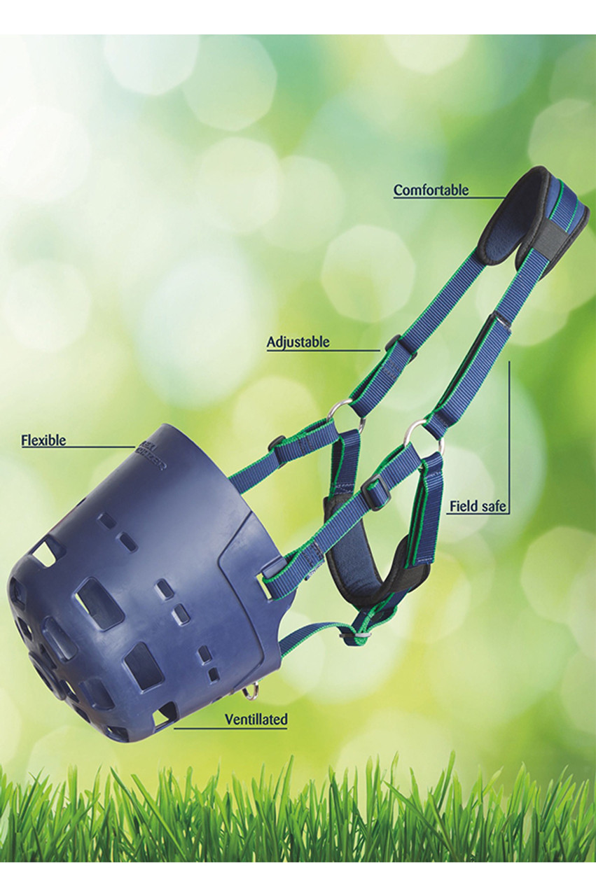 The Shires Flexi Grazer Muzzle has been developed to ensure a very real solution to controlled, comfortable grazing for horses or ponies when a managed feeding regime. This muzzle has been researched and tested and proven to be durable, washable and well-ventilated. The padded harness is ergonomically shaped and fully adjustable with field-safe fastenings to provide a secure fit. Finished with a lower D-ring for attaching a Leadrope. Available in Navy.