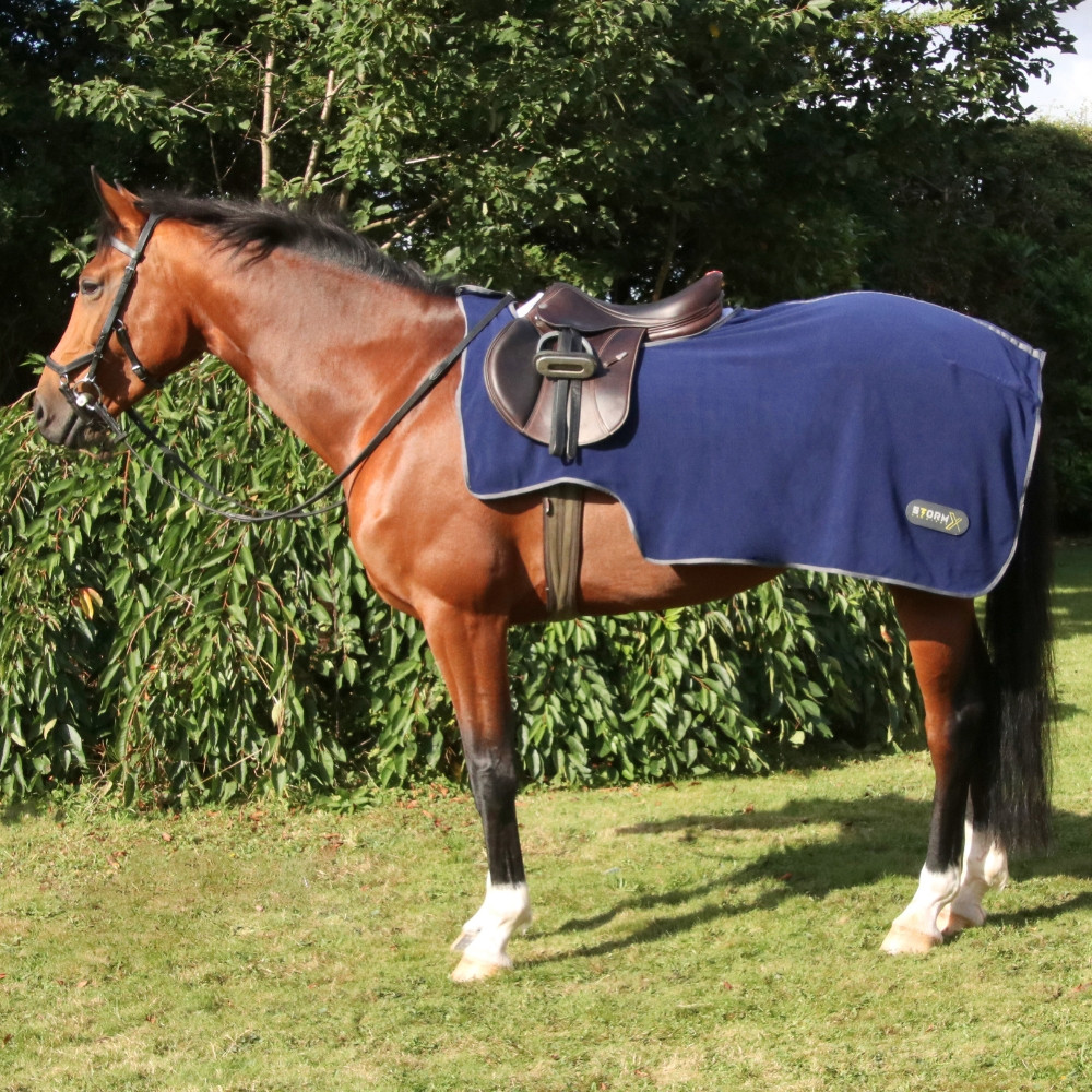 This versatile and cosy soft fleece exercise sheet is designed to enhance your horse's training, hacking, or warming up at shows. This sheet provides the perfect balance of insulation and breathability, ensuring your horse stays warm and comfortable even in colder weather conditions. This sheet has been thoughtfully finished with convenient touch tape fastening, a fillet string, and stylish grey binding and detailing, adding a classic touch to the overall design. Available in Navy/Grey.