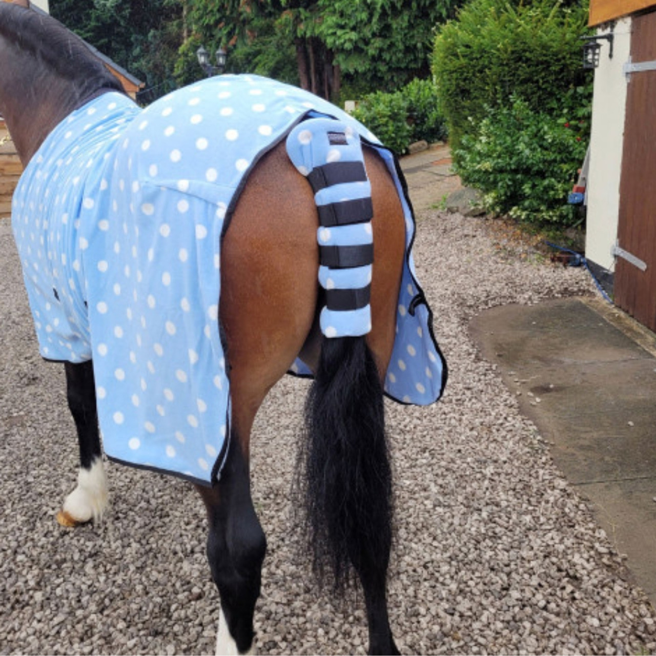 Need a high-quality, soft fleece fabric tail guard? This padded Dotty Fleece tail guard is the perfect choice when travelling with horses and ponies. It is easy to fit, offers maximum protection and has extra strong touch tape fastenings to keep it securely in place. It is practical and super stylish, especially when worn with matching items from the Supreme Products Dotty Fleece Collection.