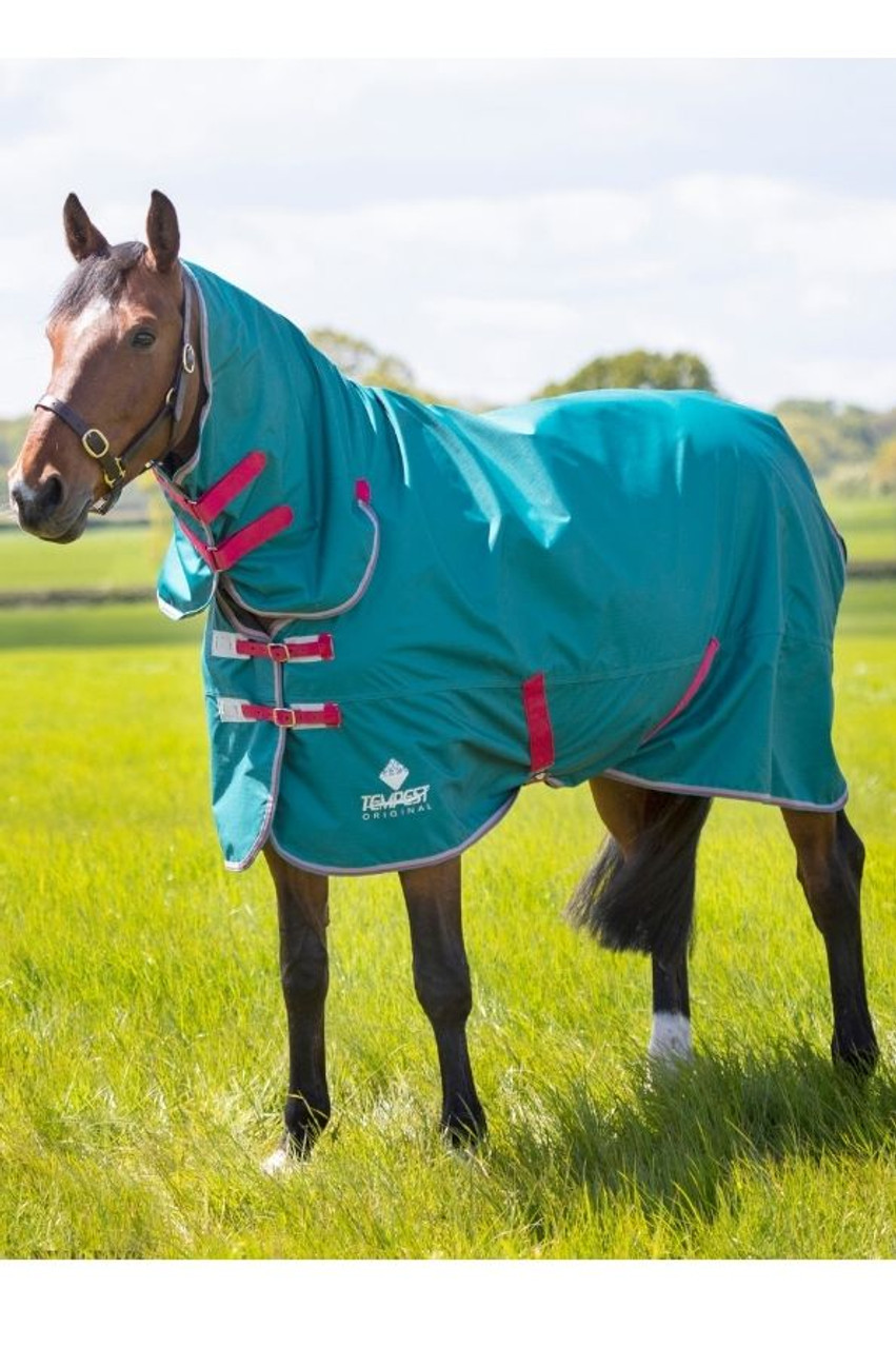 For comfort in warmer wet conditions, the Tempest Original Air Motion Combo turnout rug has got your horse covered. The integrated neck cover is effective at keeping the rain off and improving comfort inside the rug for your horse. Ventilated 3D lining draws moisture and heat into a cooling, breathable microclimate away from the skin for enhanced comfort. The rug is fully lined and features adjustable buckle chest straps and surcingles for maximum flexibility. WarmaRug Compatible - Upgrade this rug's warmth rating using separate rug liners in 100g or 200g. Available in Green.