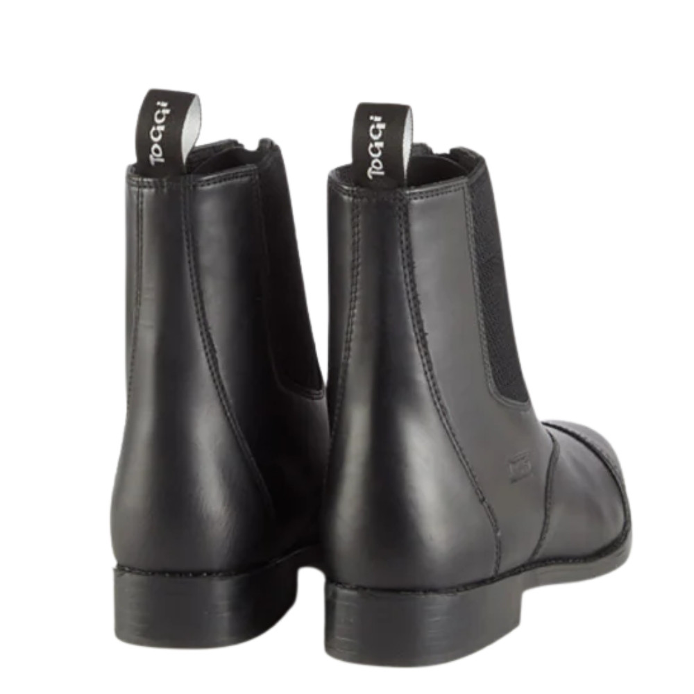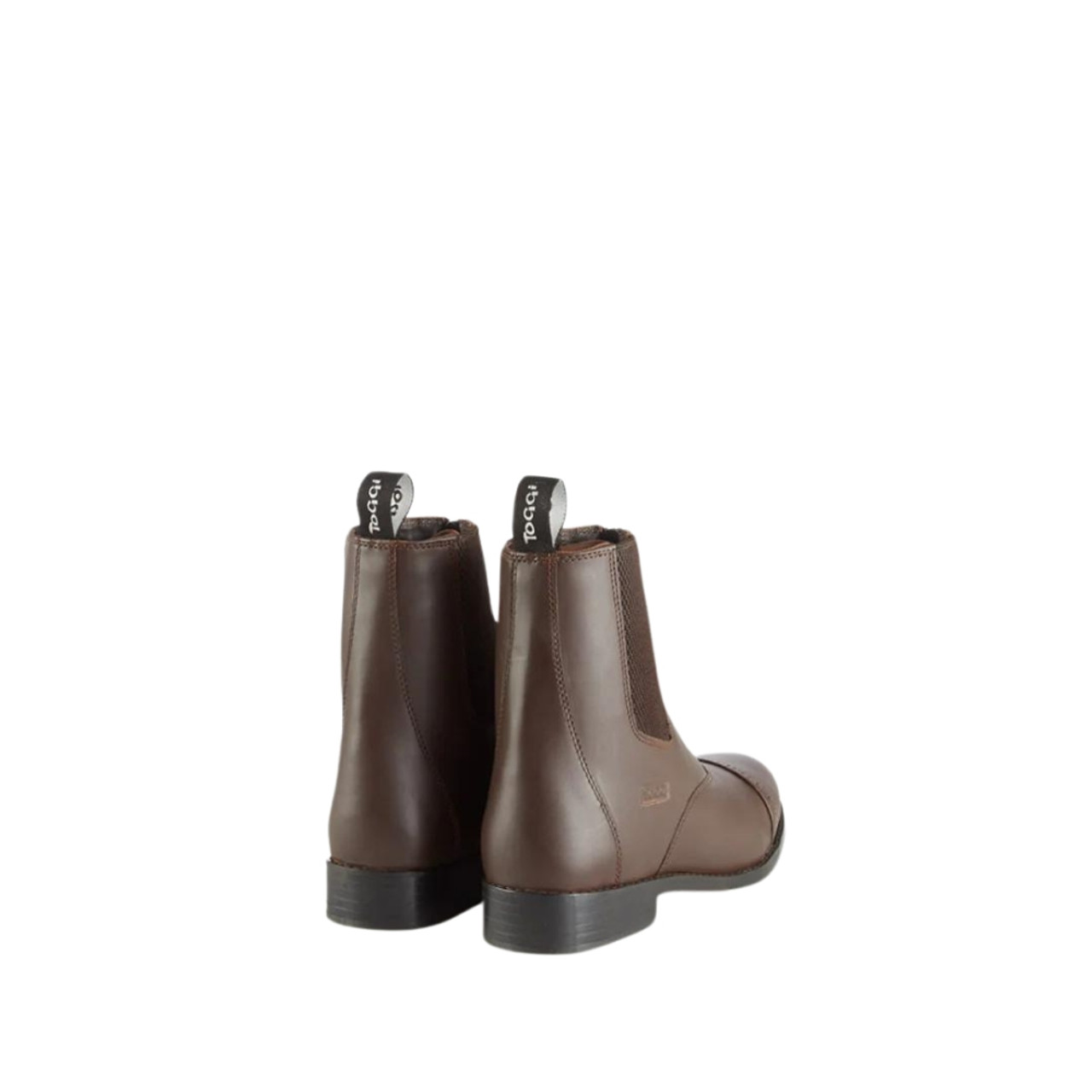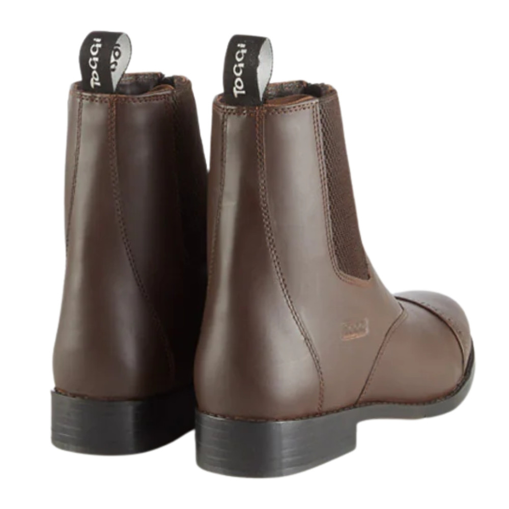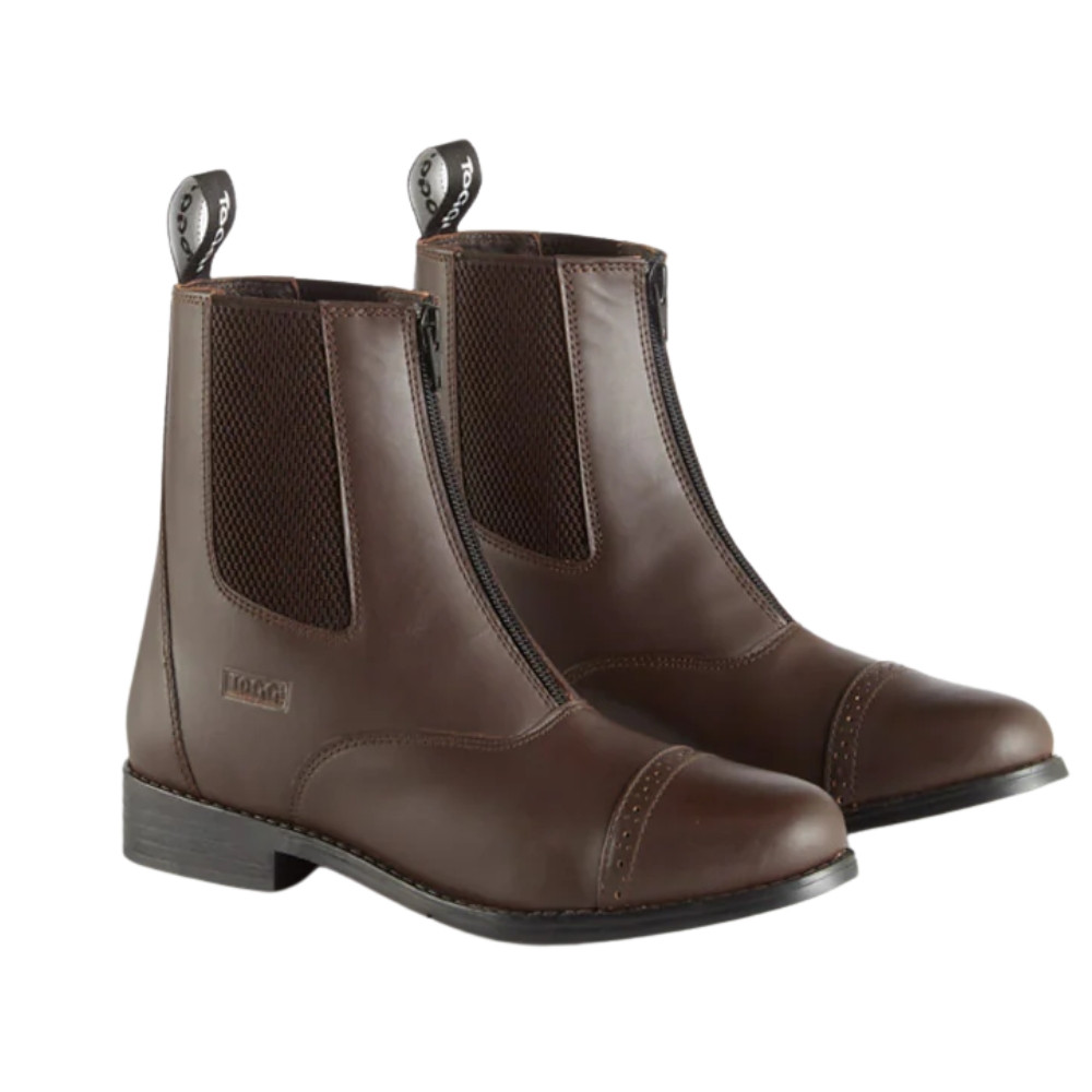 The Augusta Jodhpur Boot is available in children and adult's sizes. Augusta boots provide a traditional look with their unique brogue style detailing on the toe cap. Featuring a breathable full leather upper and a resin sole, secure quality front zip, and the famous Toggi signature tab.
