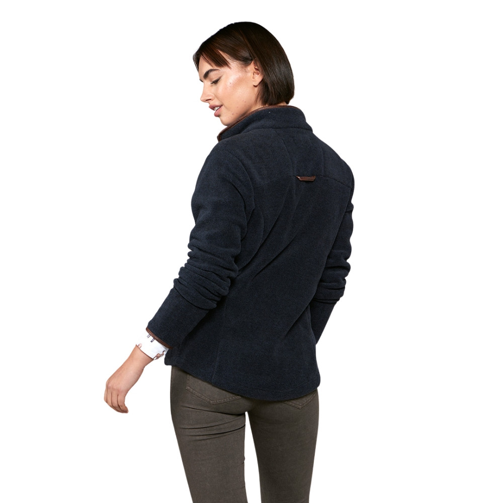 Crafted from high-quality, super-soft fleece fabric, the jacket features a luxurious mélange effect that combines two complementary yarn colours. This unique finish adds depth and texture, elevating its overall look and feel. The flattering, feminine silhouette is further enhanced with stylish faux leather binding, providing a refined touch to the design.