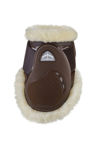 Designed with outstanding ventilation, heat dissipation and performance in mind, the Young Jump Vento Sheepskin fetlock boot helps improve jump performance due to its anatomical design and effect on the horses hind leg action. Lined for comfort with super soft synthetic sheepskin, a fleece that's man made and free of animal product, that easy easily cleaned and allows sand to easily disperse out of the boot should it get trapped. Technically advanced ventilation through the fabrics of the boot draws heat away from the legs and keeps airflow moving through the boot through the upper and lower exterior vents. Available in Black or Brown.