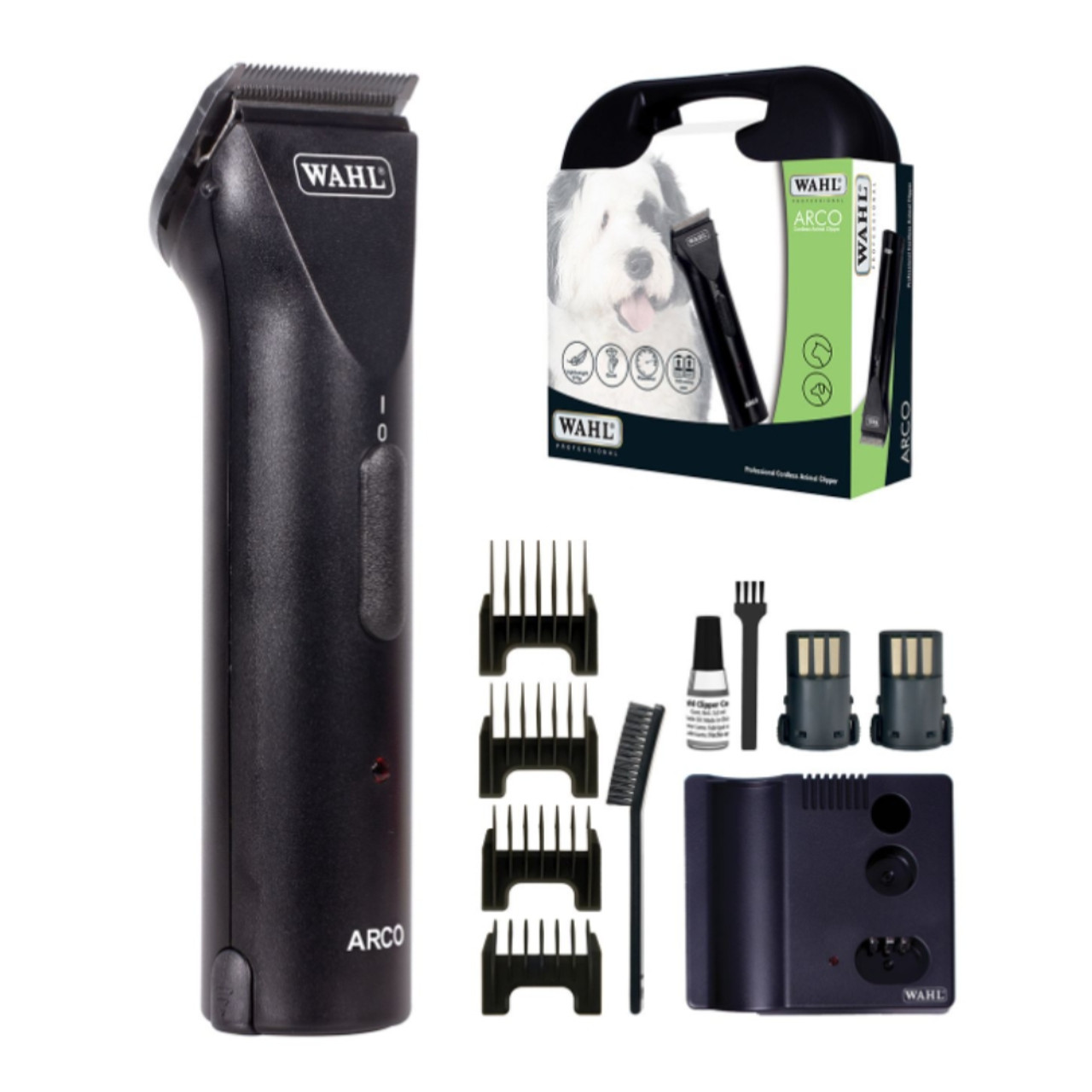 • Includes: Arco Cordless Animal Clipper, Charging stand, Spare battery pack, Blade guard, 4 attachment combs (3mm, 6mm, 9mm, 12mm), Blade oil, Cleaning brush, Instruction booklet