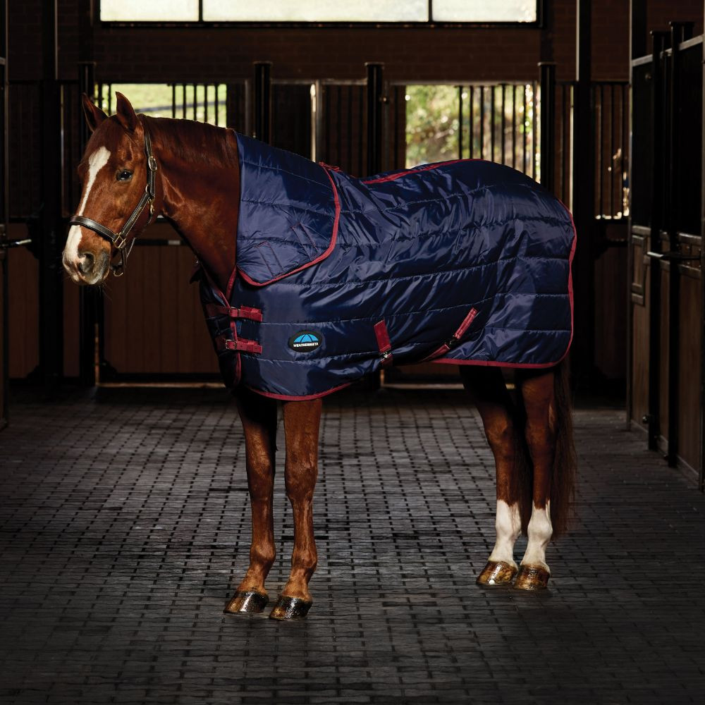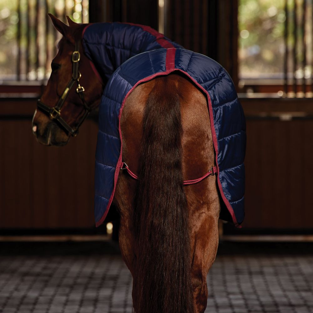 For added versatility, the combo neck can be folded back and secured with a touch tape loop, converting it to a standard neck rug when needed. Finished in classic navy and burgundy, this stable rug combines style, practicality and performance.