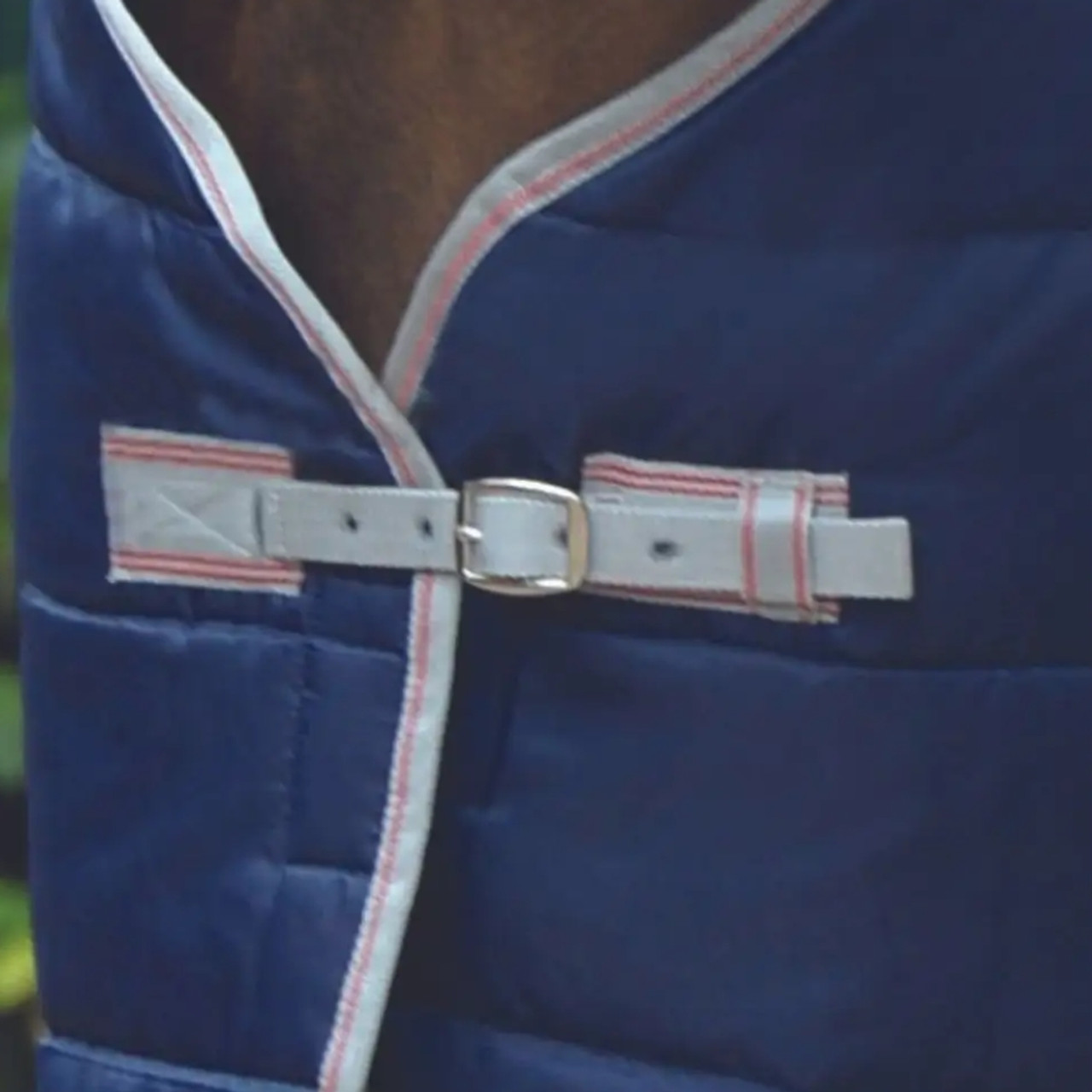 A breathable stable rug with a 210 denier outer and a 210T polyester lining with a medium lite 110g polyfil to keep your horse warm and comfortable, whilst offering freedom of movement. The boa fleece at the wither offers extra comfort where needed. Available in Navy/Silver/Red.