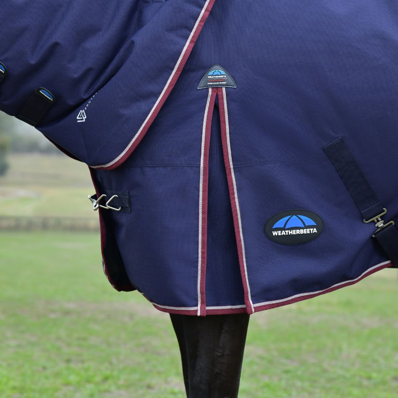 Finished with contrast bindings along with WeatherBeeta branding and adjustable & removable leg straps and a standard tail flap.