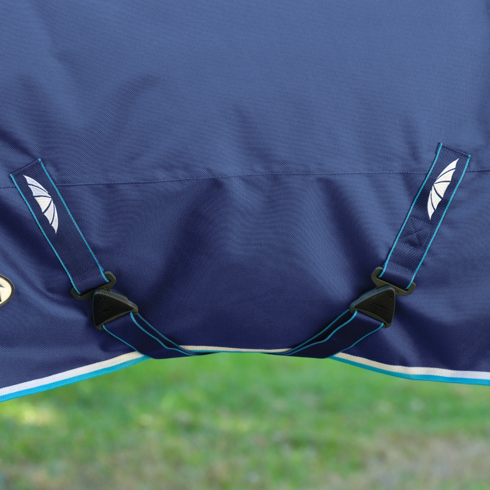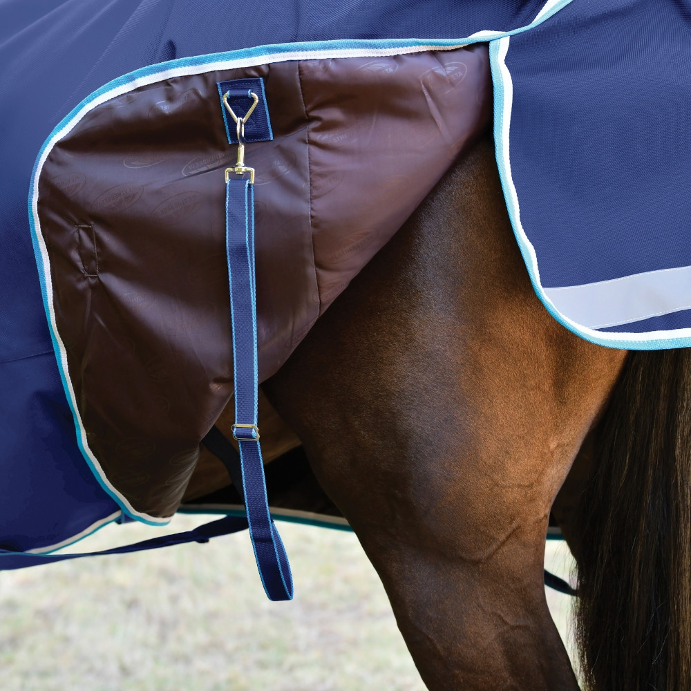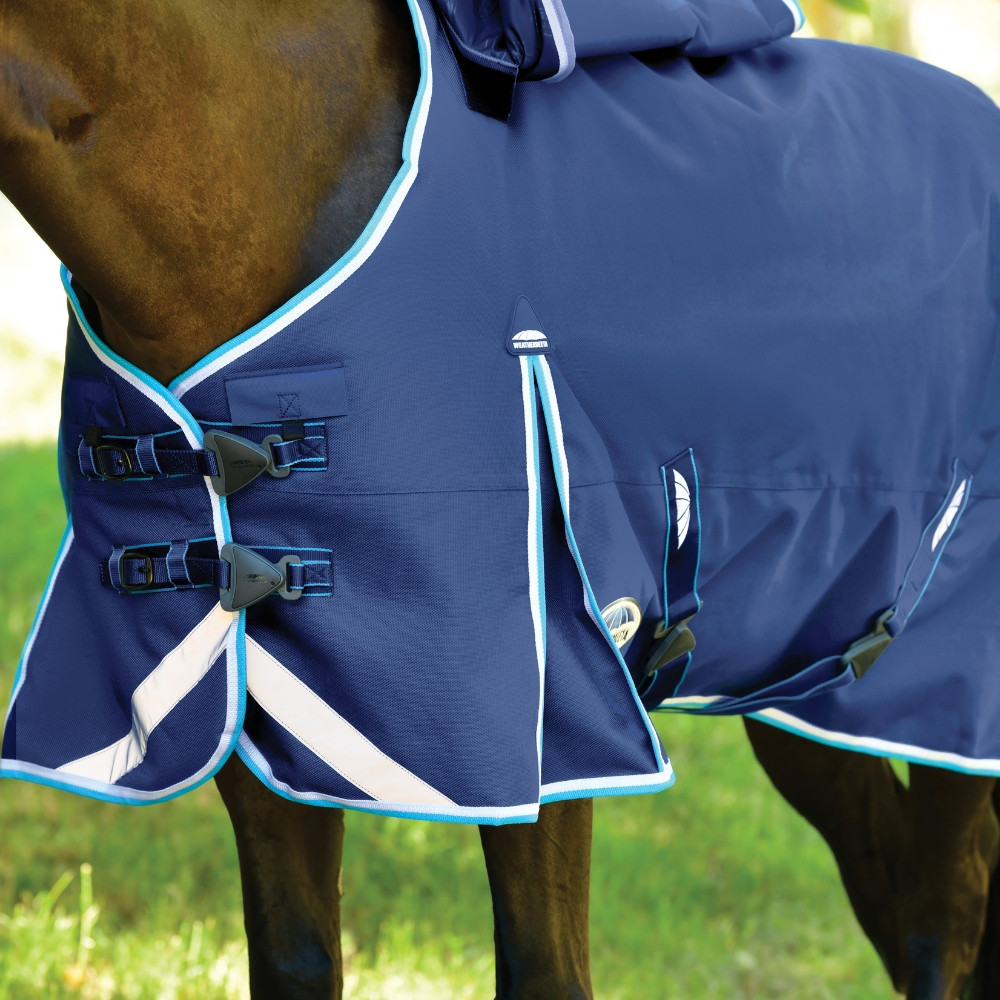 Made from extra strong 1680D ballistic nylon with 220-gram filling, this Ultra Hardi rug from Weatherbeeta protects your horse from whatever weather this winter throws at us! Featuring memory foam padded wither guard, helping to reduce pressure on the withers and prevent chafing. The detachable neck has an elastic waterproof fleece lining, creating a snug fit that keeps your horse warm and dry. Compatible with the Comfitec Liner system, this rug can provide a versatile range of warmth both in and out of the stable. Available in Blue/White.